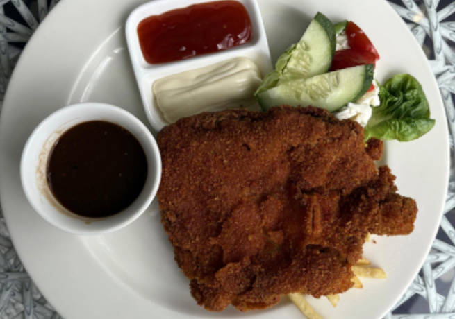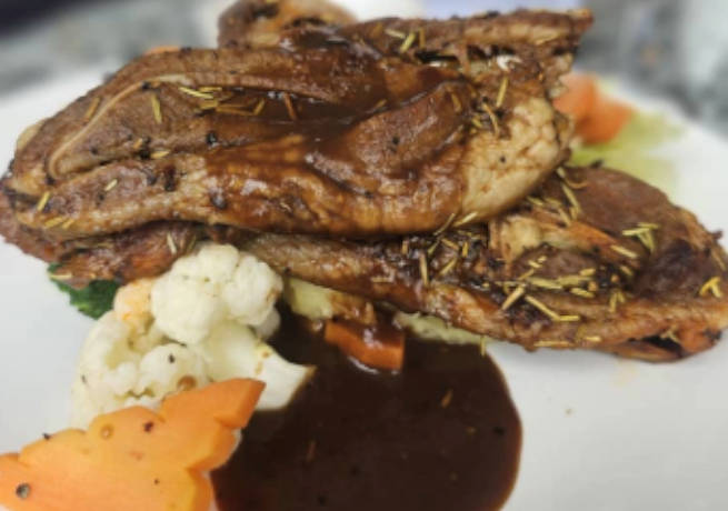 Served with Vegetables, Coleslaw, Potatoes and Black Pepper Sauce.