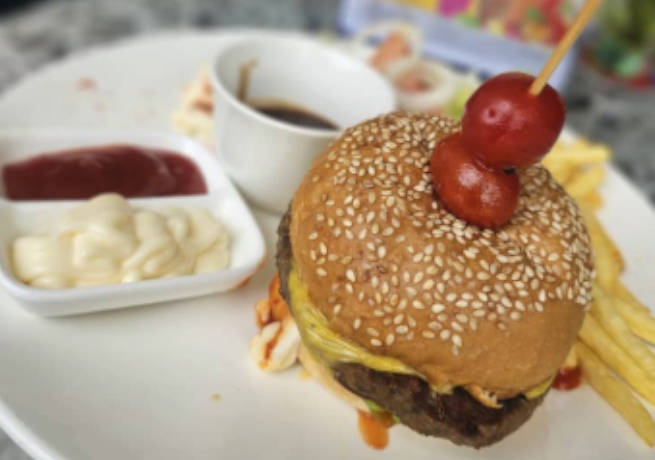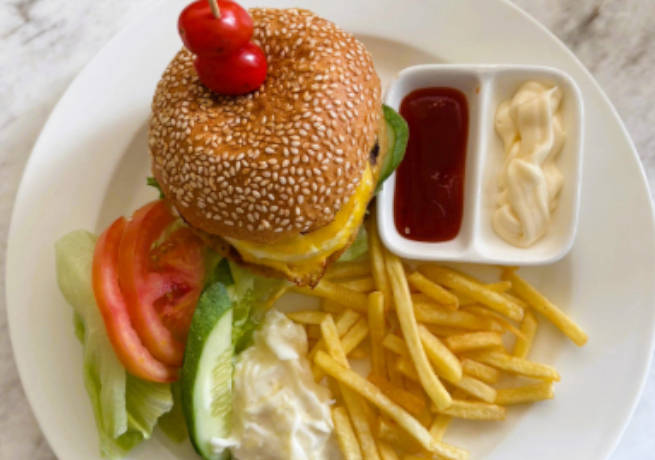 Accompanied with Egg, Sliced Chicken, Cheese and French Fries.