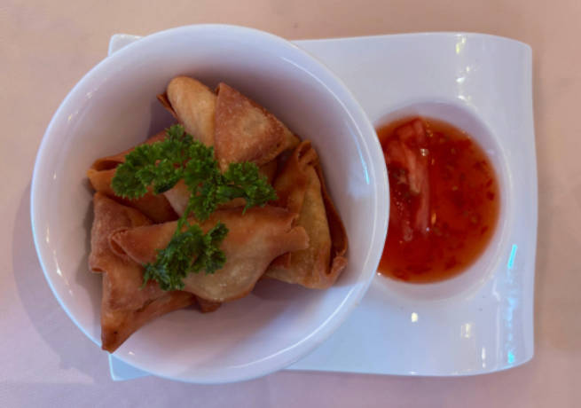 Crispy Triangle Shapped Patty; Filled with Spiced Vegetable Mixture.